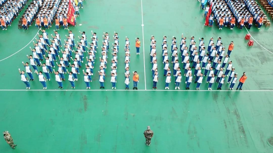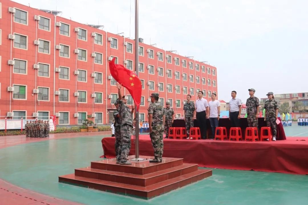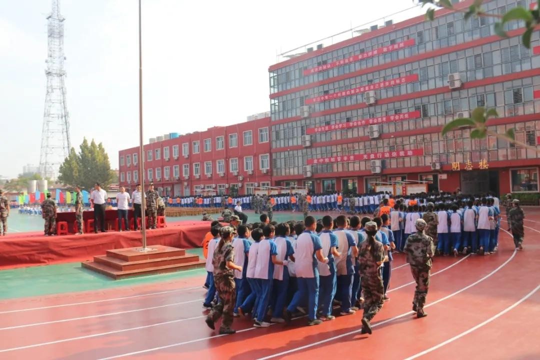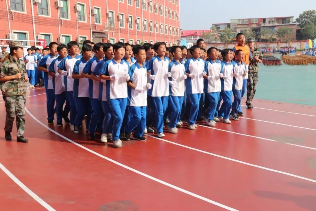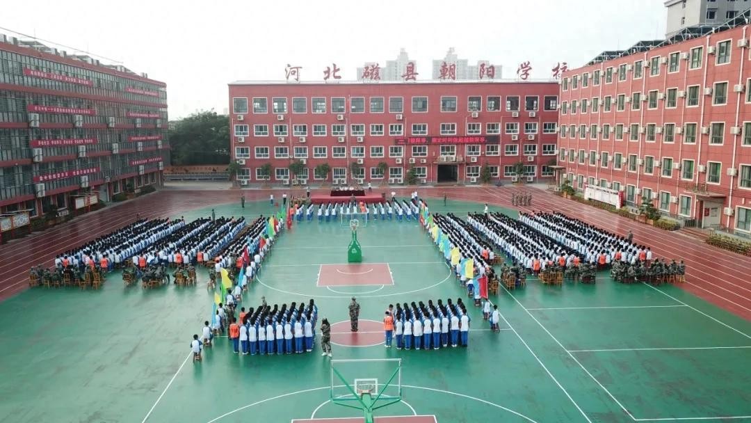 分列式开始!河北磁县朝阳学校新生军训展演“兵味儿”十足