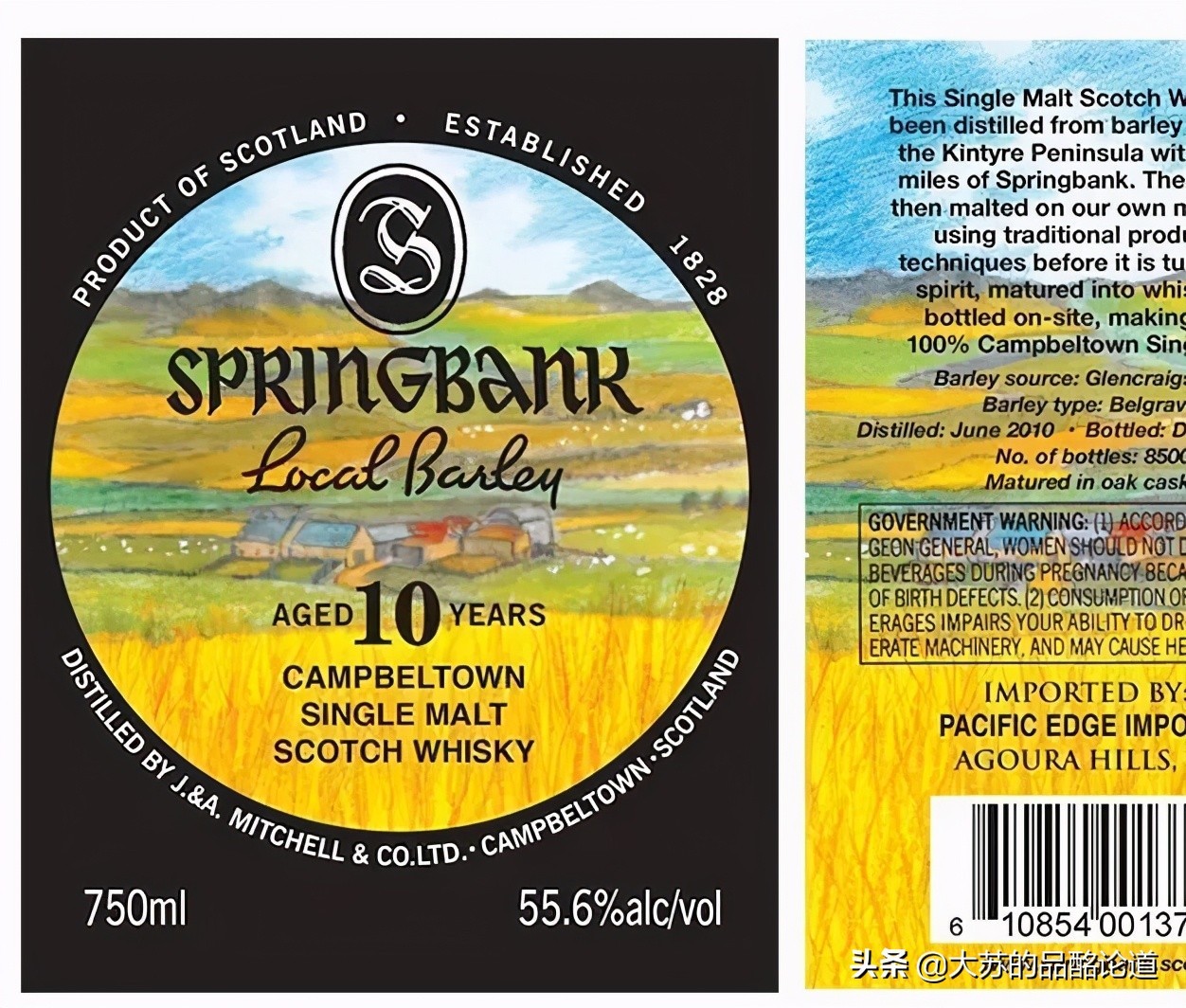 6、云顶本地大麦10年(Springbank Local Barley 10 YO),国际均价293美元