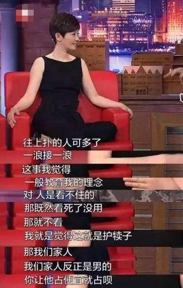 最后徐帆甚至在节目上表示说:“现在娱乐圈儿中的小姑娘真的是一个个都会往上扑,就和疯了一样,一浪接一浪的,我能有什么办法呢,反正我家男人又不吃亏”