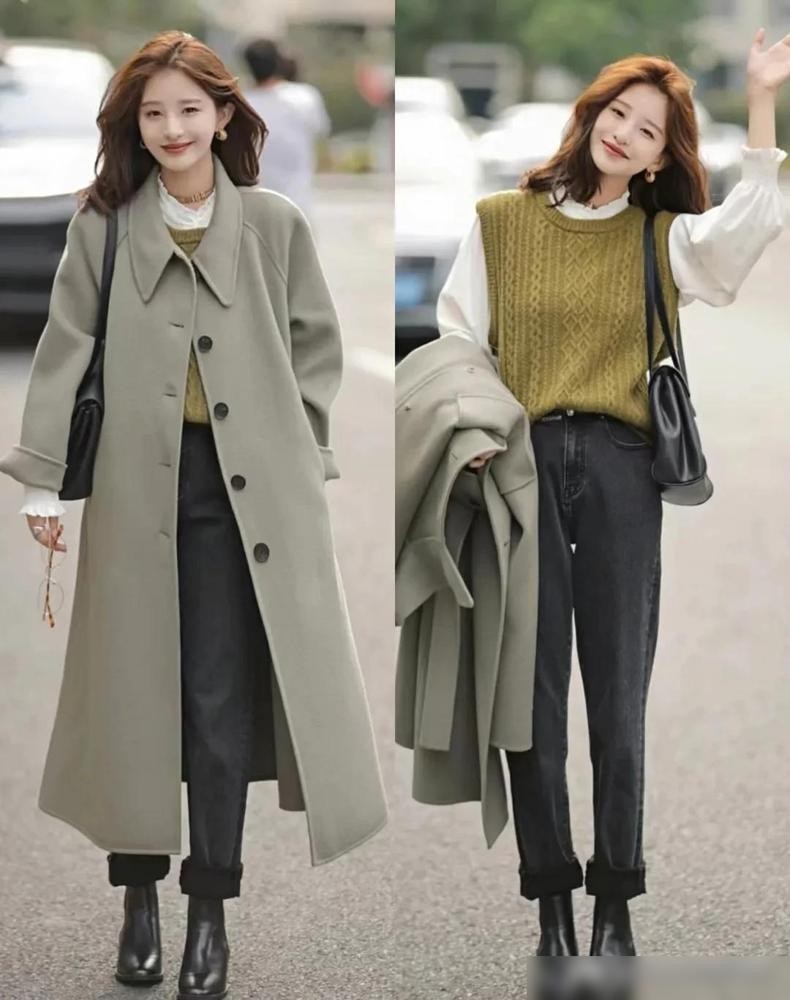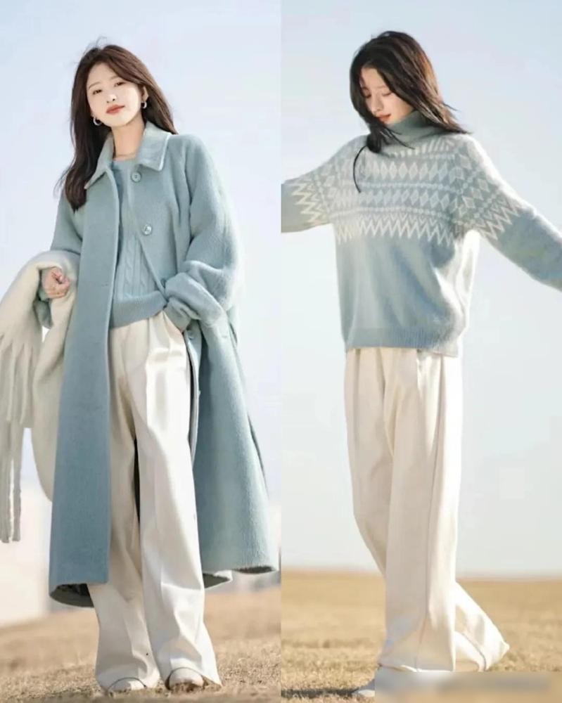 秋冬长外套穿搭法则:“毛衣+长裤”做内搭,简单温暖又高级