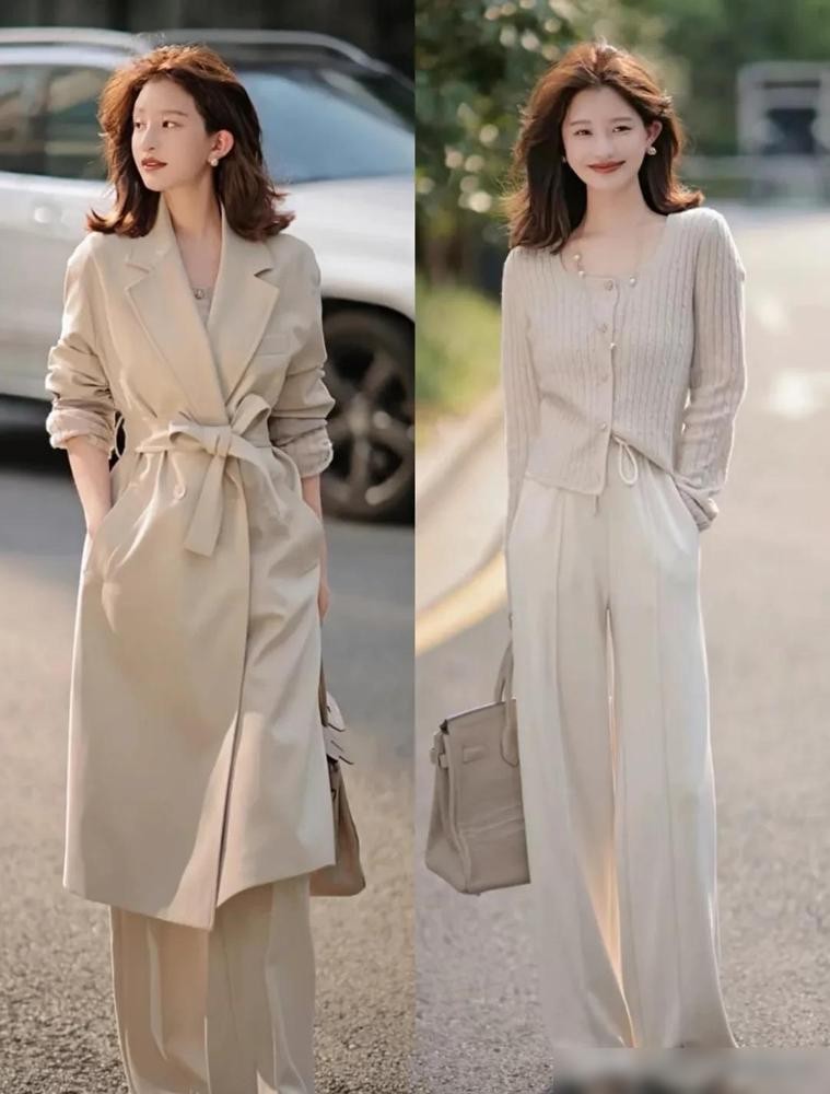 同时,米色与卡其色长裤相比较自然,不会显得过于突兀,非常适合秋冬季节的沉静氛围。