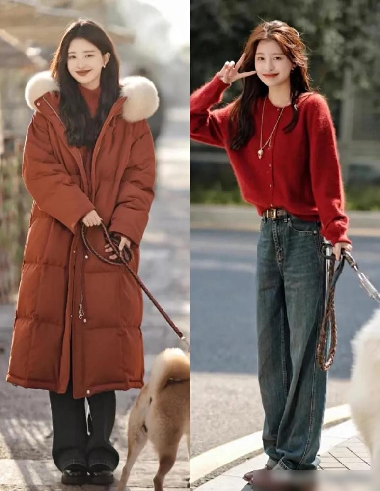 尤其是在外面穿上羽绒服的时候,更显得独具时尚性,同时毛衣与牛仔裤的搭配也依旧有着舒适感。
