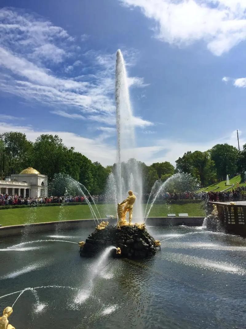圣彼得堡夏宫位于波罗的海的芬兰海湾,是彼得大帝于1710年修建完成的沙皇郊外别墅。夏宫的主要景观之一是高达20米的大瀑布喷泉。这座喷泉的设计独特而壮观,激越的泉水从狮子口中喷涌而出,狮子口被大力士粗壮的双手掰开。泉水沿着夏宫花园流向芬兰海湾,为整个夏宫增添了一份生动与活力。