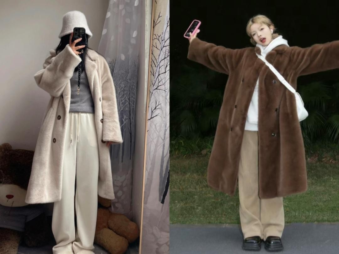 今年流行时髦显瘦的毛绒大衣,学会这几套穿搭,好看又洋气!