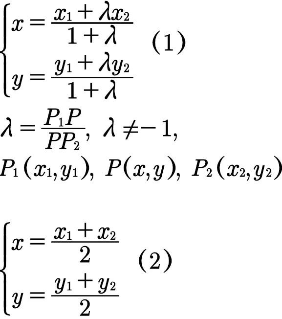 当λ=1时,就是定比分点坐标公式的特例——中点坐标公式。(即公式2)