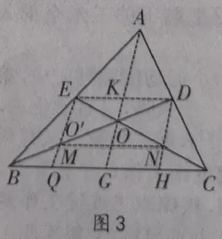 DK:BG=DO:OB=1:2,DK:CG=AD:AC=1:2,∴BG=CG,∴点G是BC的中点∴AG是△ABC的中线∴△ABC的三条中线交于一点。