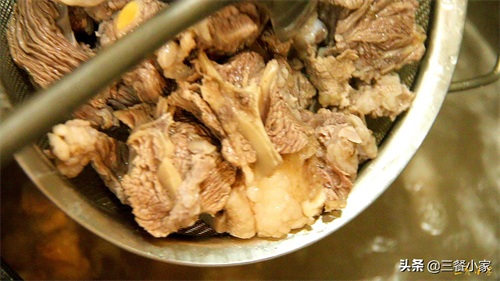 ② 羊排焯好水,用网勺捞出沥干,然后再加入大量的清水,煮开后继续煮80分钟(如果用高压锅的话,上汽后15分钟即可);