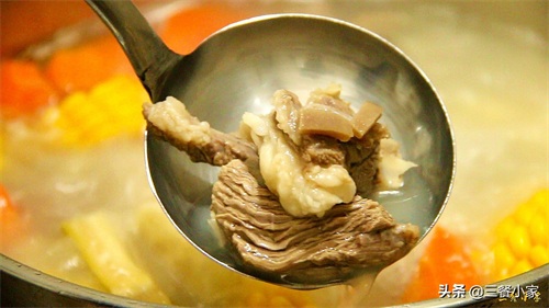 接着呢,如果是熬汤的话,那就选择羊蝎子,有一道很出名的菜就是用它做的。羊蝎子也就是羊的脖子,这一部分虽然肉相对较少,但骨头很薄,而且骨头中间还有骨髓,熬出来的汤又白又鲜,吃的时候吸一吸骨髓也是真的香。
