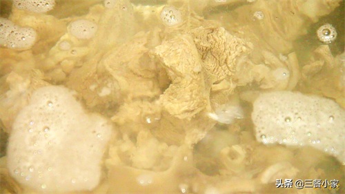 ① 羊排砍小块(这一步可以叫商家帮忙),清洗干净,然后冷水下锅煮开后焯水10分钟,同时水刚煮开的时候,记得要不停地打去浮沫,打到浮沫干净为止;
