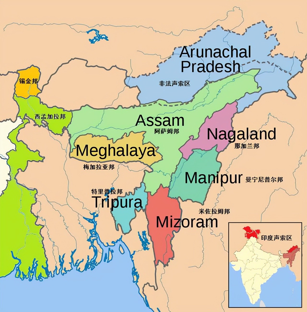 由于是英国撤出印度才加入进来的一片区域,印度人时常会将东北区人民现象成为敌人,就是害怕东北部的人民奋起反抗动摇印度的地位。