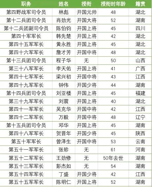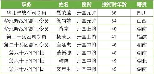 ——第四野战军:洪学智(上将)、韩先楚(上将)、刘震(上将)等;