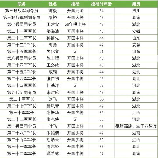 ——第三野战军:王建安(上将)、陶勇(中将)、聂凤智(中将)等;