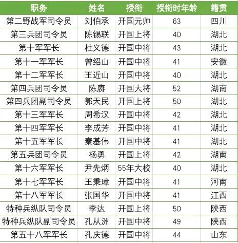 ——第二野战军:陈再道(上将)、陈锡联(上将)、王近山(中将)等;