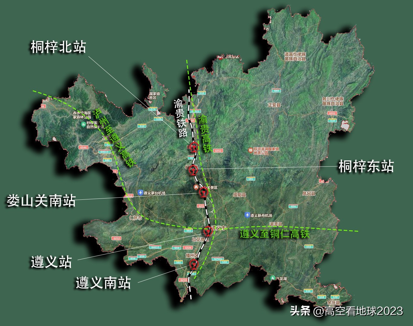 相较于贵阳,遵义的高铁站就显得捉襟见肘了,目前,遵义运营的高铁线路是渝贵铁路,这是一条客货共线快速铁路,设计速度200公里/小时,2018年投入运营,遵义段共设立了5个站。不过,根据查阅资料显示,新的渝贵高铁已于2024年5月30日获批,这条设计速度目标为350公里/小时的高铁路线,不再经过桐梓县,而是经过正安、绥阳站进入遵义,然后由开阳接入贵阳。