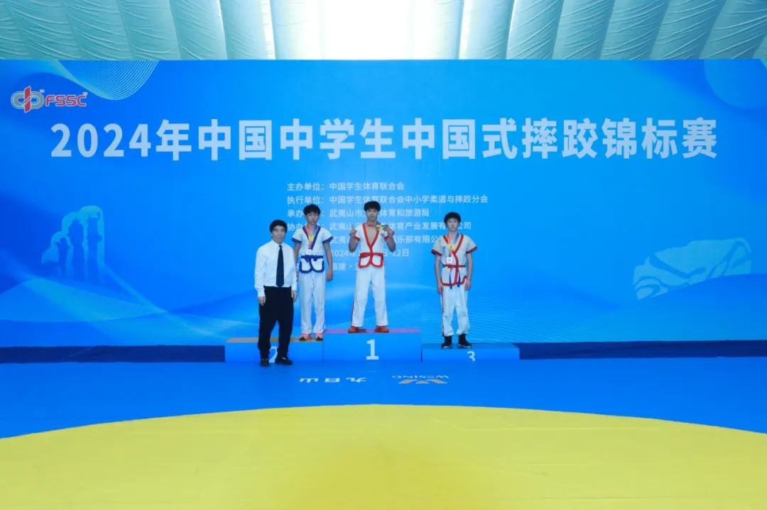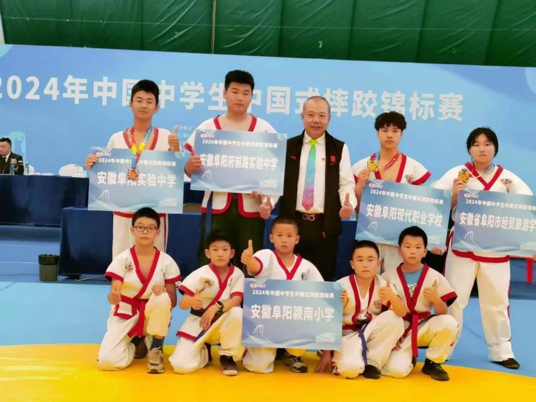 (阜阳实验中学的赵鹏程获得初中组男子56公斤级铜牌)