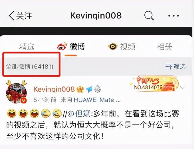 自2015年9月加入微博后,Kevinqin008通过不间断的发帖,吸引了一众粉丝。数据显示,他全部微博数量为64181条。不算不知道,一算吓一跳!在Kevinqin008开通微博6年时间内,他平均每天发帖数量达到29.3条。