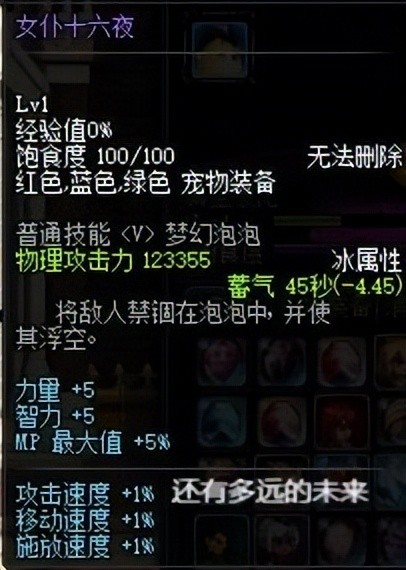 属性为:力量+5智力+5MP最大值+5%攻击速度+1%移动速度+1%施放速度+1%