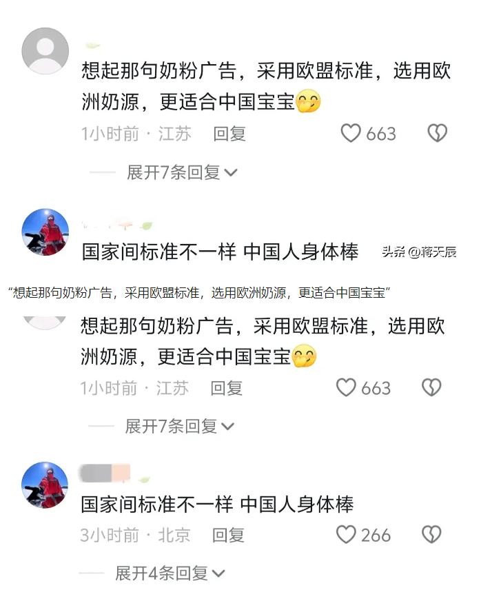 “符合中国标准”在这场争论中,成了一把双刃剑。一方面,它代表着产品在国内市场的合法性与安全性,另一方面,它也让消费者对中国的食品安全标准产生了新的审视。某位网友不禁感慨:“符合国家标准现在都感觉像是一种负面词了。”