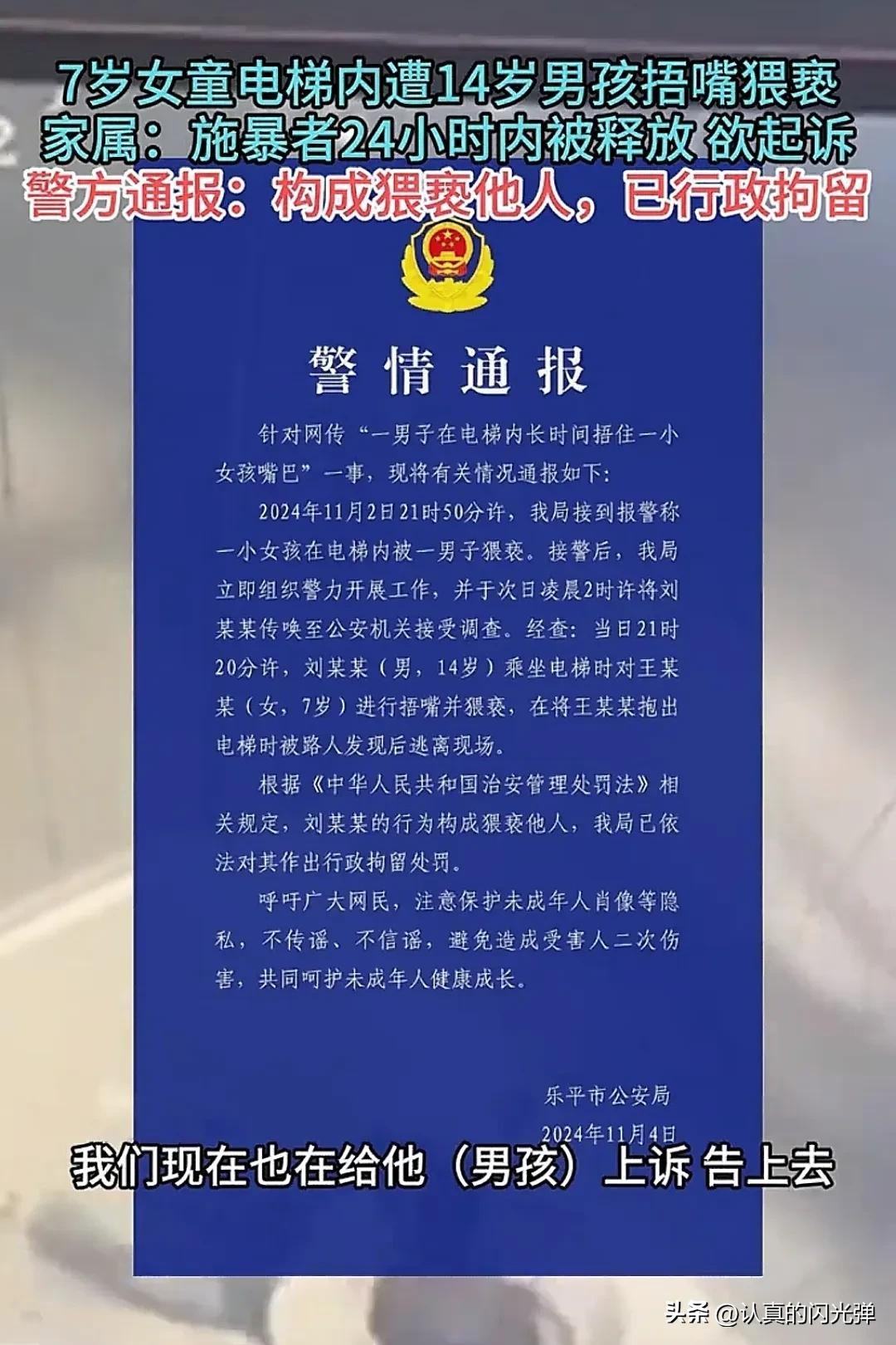 警方通告!女童电梯遭13岁男孩猥亵,男孩已拘留,女孩家属欲上诉