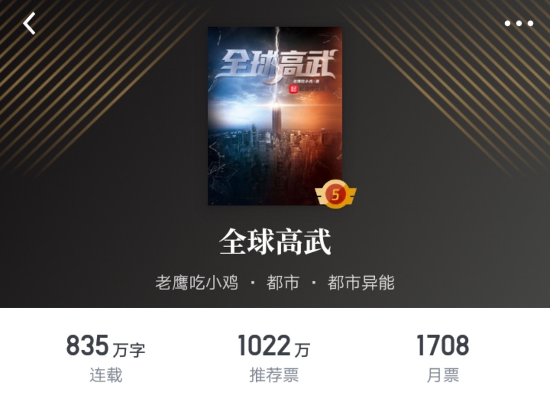 这本小说是老鹰吃小鸡的封神作,连载期间曾经称霸起点畅销榜超过十个月的存在。完结时候均订超过五万。可以说各方面成绩都很突出。