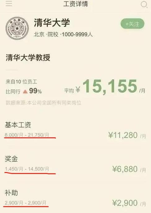 而最近清华大学教授的工资金额被晒到了网上,引起了很多人的关注,在晒出的图片中,大家能了解到,清华大学教授的基本工资都在8000元到21750元,而平均基本工资在11280元,后续的平均奖金也达到了6880元,补助也达到了2900元。