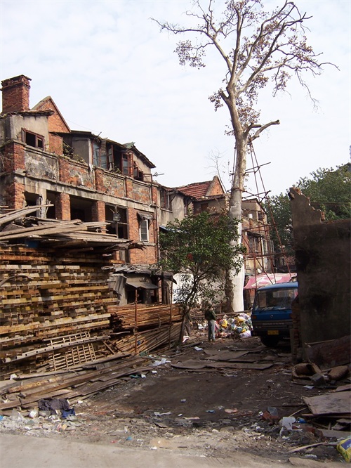 1870年南院栽种的两颗英桐之一,为城市历史及自然景物的见证,2005年拆迁暂停时搭起支撑架,2009年最终被毁