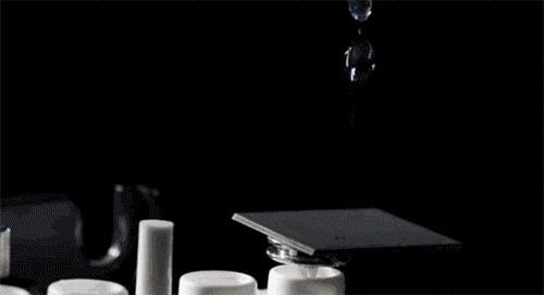 左边白色为普通材质,右边蓝色为超疏水材质~