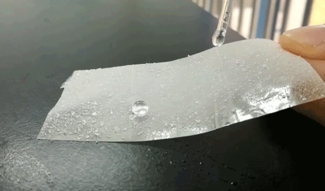 水在气凝胶毡表面游走,完全不渗透、不吸水