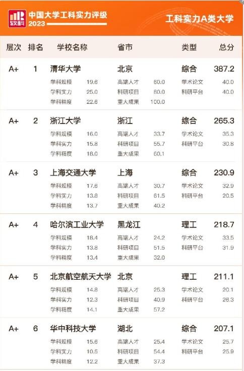 软科版我国内地高校工科实力评级:清华领衔,浙大和上交大进入前三