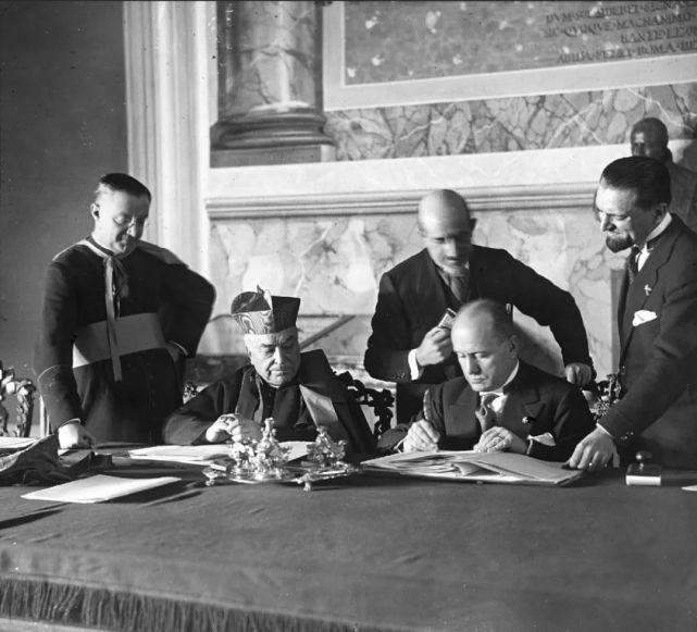 1929年2月11日签署《拉特兰条约》现场,右二为墨索里尼