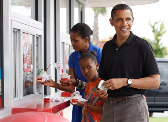 2003年1月,巴拉克·奥巴马再次就任总统,这时萨沙已经11岁,她在老爸发表就职演讲时打了个哈欠—就像普通孩子、比如后来的巴伦·特朗普一样。