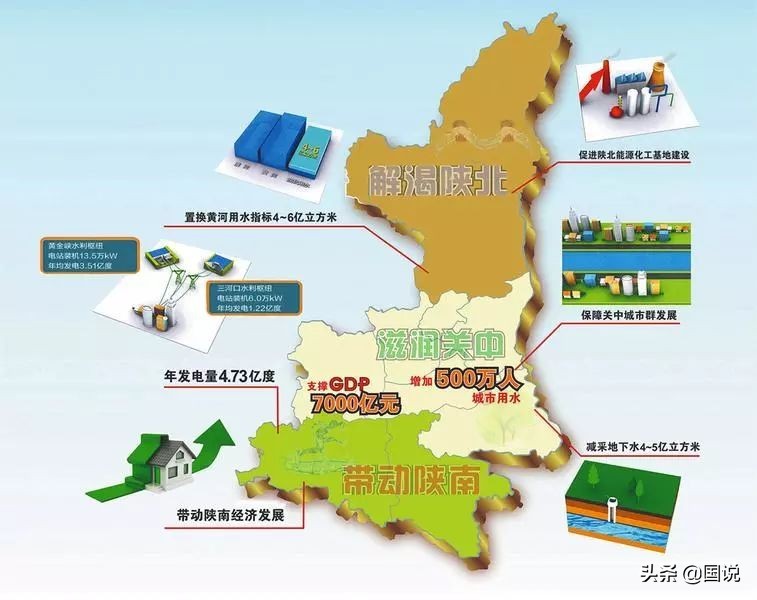 其中三个控制性工程包含秦岭超长隧洞、黄金峡水利枢纽、三河口水利枢纽。