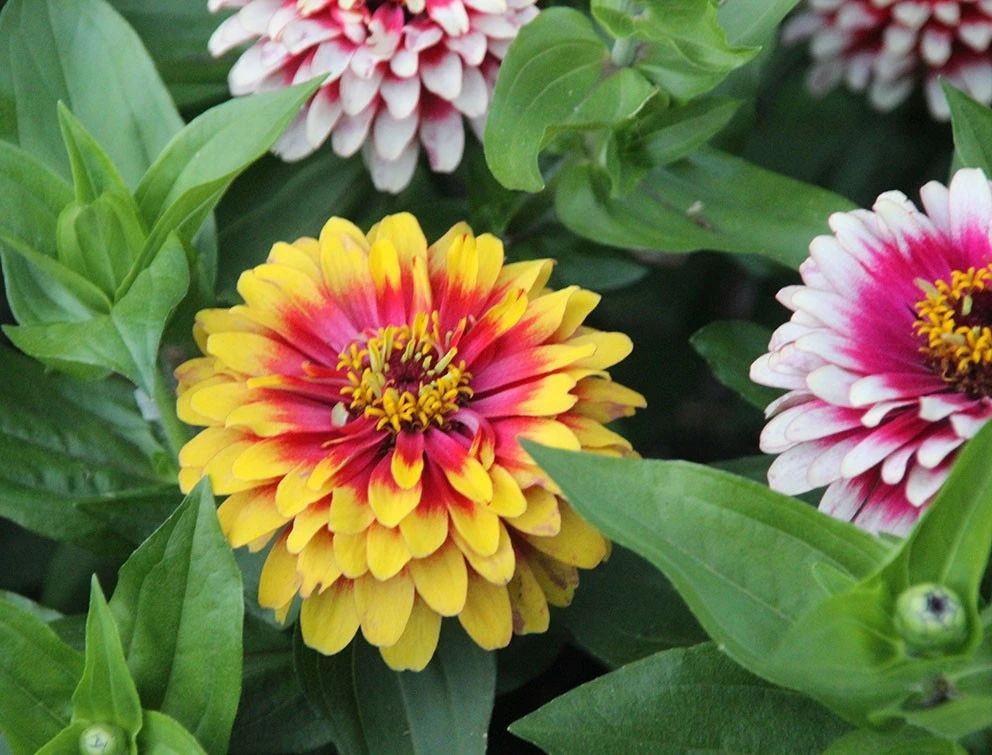 百日菊适合盆栽养护,能种在花坛上,养成一片小花海,它的花色极其丰富,花通常都是比较鲜艳的,比如常见的粉色、橙色、橘黄色、白色、红色和紫色等。现在园艺学家们还研制出来一些混色的品种,就分内外层的花瓣,花瓣的颜色各不相同,长出的花瓣也越来越多,使得花朵看起来越来越大。