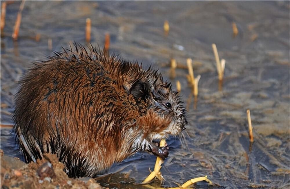 麝香鼠实际上是一种国外引进的水耗子,其最为独特的地方在于其身上散发着一种麝鼠香,这正是它得名的原因。