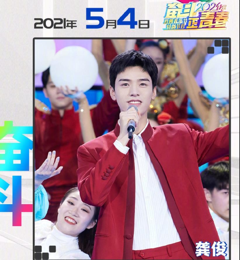 前段时间靠网剧《山河令》走红的龚俊也参加了五四晚会,和唐艺昕、曾舜晞合作表演歌曲《把未来点亮》。