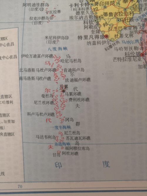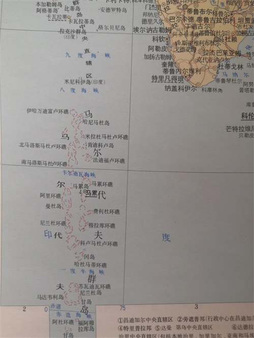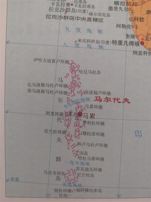 【地 理】 印度洋上的群岛国家。距离印度南部约600公里,距离斯里兰卡西南部约750公里。南北长820公里,东西宽130公里。由26组自然环礁、1192个珊瑚岛组成,分布在9万平方公里的海域内,其中约187个岛屿有人居住。岛屿平均面积为1-2平方公里,地势低平,平均海拔1.2米。位于赤道附近,具有明显的热带气候特征,无四季之分。年降水量2143毫米,年平均气温28℃。日平均最高温度31°C,最低温度26°C。