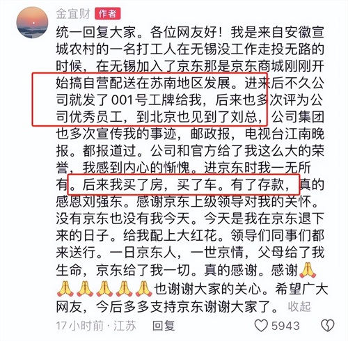 金宜财的经历也让不少网友好奇京东公司的境况。
