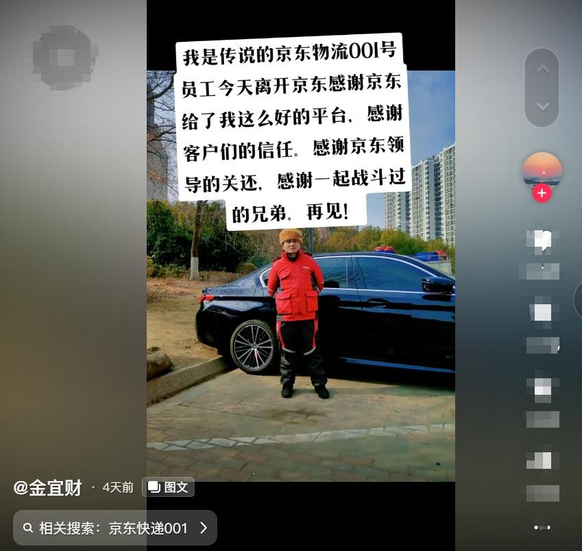 直到一段时间,京东001号快递员金宜财正式离职,就这样结束了长达16年的陪伴。
