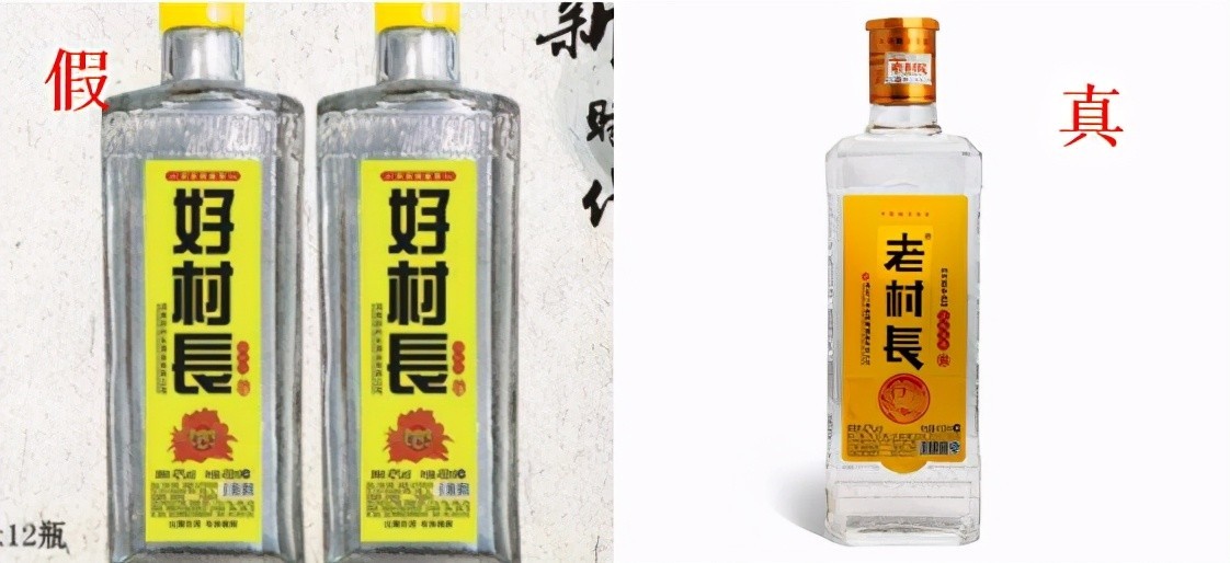 老村长酒产自中国东北黑龙江,为东北特色低档白酒中的优质品牌。酒质口感柔和,甘甜顺畅的味道而广为人知。近些年,它更是在《乡村爱情故事》等热门剧中频频出境,属实增加了一大波流量,它的销量也因此大大增加。“老村长”来了,“好村长”便也来了,看看这字体这大小,完全一模一样,不仔细分辨还真分不出来。