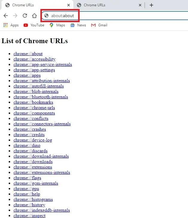 “about”部分处理浏览器的多个内部命令。事实上,Web 浏览器使用几个“about:”命令来重新加载已内置在浏览器中的页面。