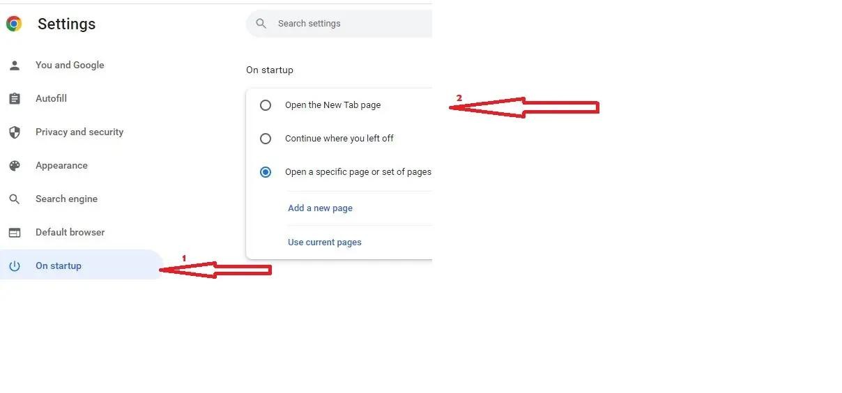2. 将光标移动到菜单选项,选择设置,点击最下方的“On startup”