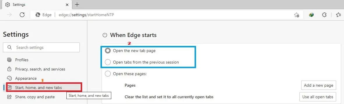 2. 进入“Start, home, and new tabs”选项,选择“remove”,将会自动选择第一个选项。