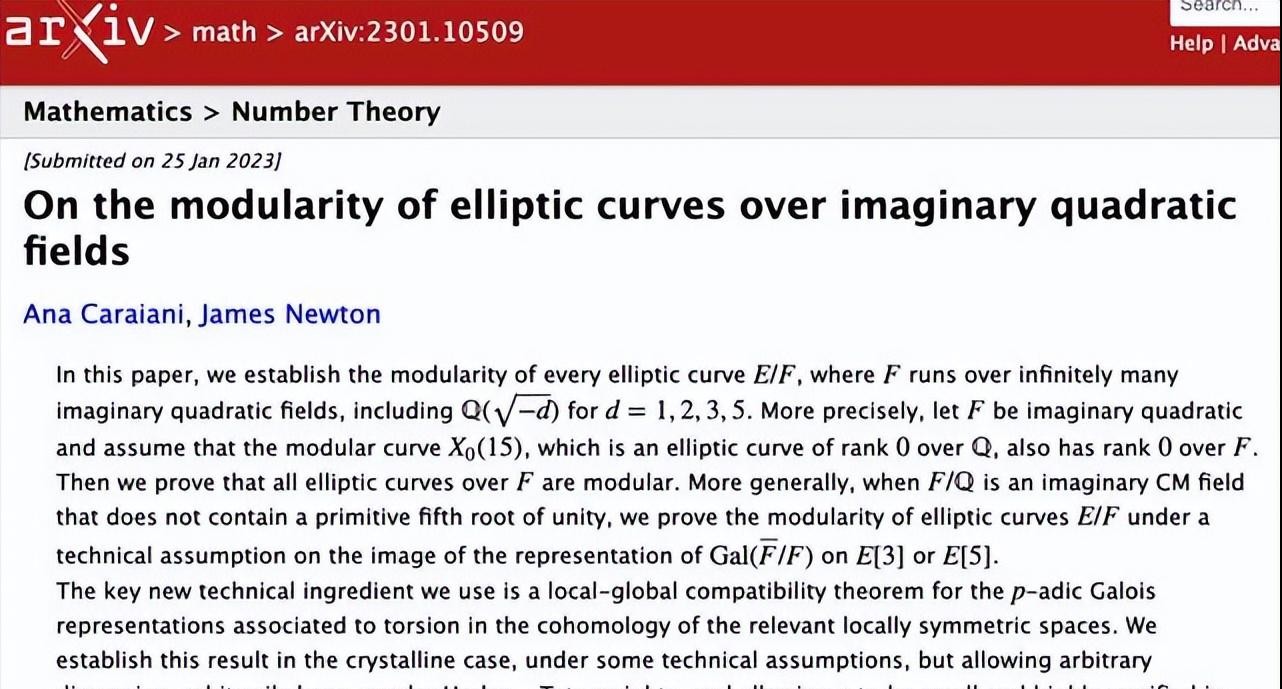 这一研究通过将怀尔斯和其他数学家提出的证明模式适应到虚二次域上的椭圆曲线,实现了对于大约一半的虚二次域上的所有椭圆曲线的模形式性质。
