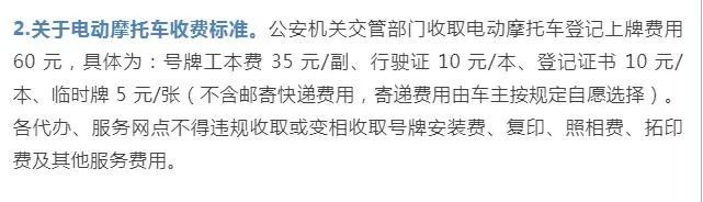 海南乐东:电轻摩、电摩的上牌费60元,如果2年内未上牌,还有一定的检测费用。