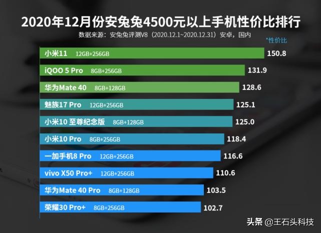 高端手机“性价比”排名:小米第一华为第三,都是国产代表