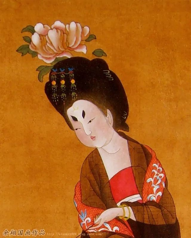 除了真实的花朵之外,绢花也是算簪花的。1972 年在新疆吐鲁番的阿斯塔那唐墓出土的绢花,虽历千年,色彩仍然保持鲜艳。