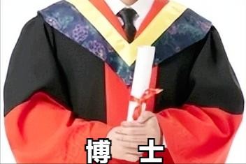博士:方帽檐黑帽,红穗,红黑双色袍