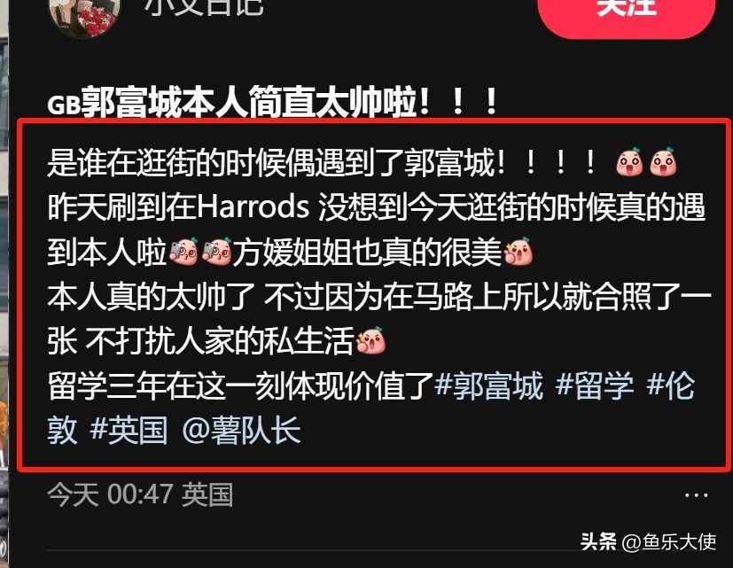在繁华的伦敦街头,偶遇明星总是能引发一阵小骚动,而当这位明星是曾经风靡亚洲的“四大天王”之一——郭富城时,这份惊喜更是倍增。