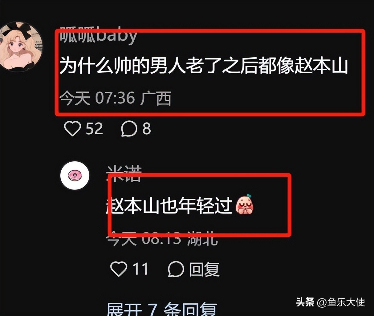 将他与喜剧演员赵本山相提并论,调侃“帅的男人老了都像赵本山”。