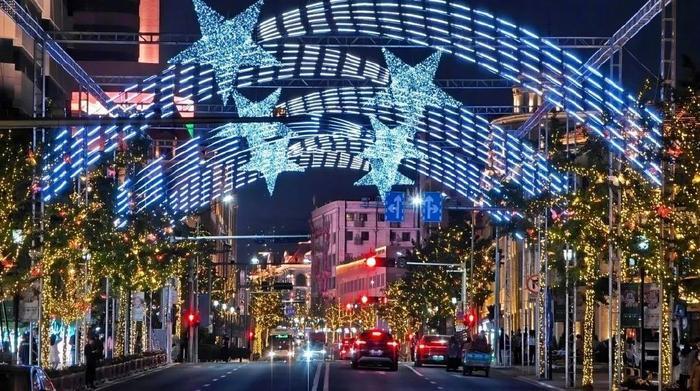 入夜后,各种璀璨的灯光亮起,绚丽多姿,使得中山路更具迷人魅力。